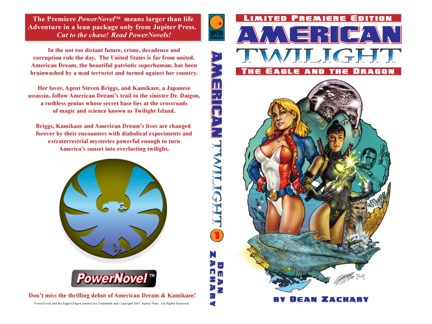 American Twilight: The Eagle and the Dragon concerns a superhuman American patriot and a Japanese assassin who form an unlikely alliance to fight a mad scientist on a mysterious island in the Bermuda Triangle. It's James Bond meets the X-Men. 185 Pages with a 20 page Art Section!